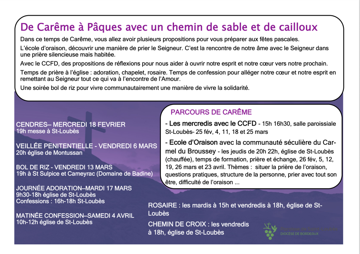 Horaire des Messes de la paroisse